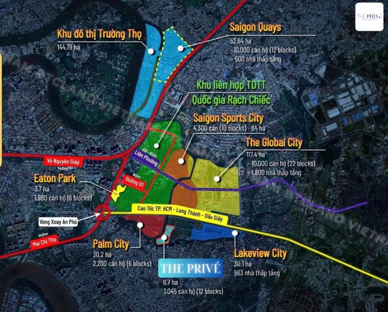 The Privé nằm ngay “cửa ngõ” nút giao An Phú – trung tâm giao thông chiến lược nơi kết nối giữa Cao tốc TP.HCM – Long Thành – Dầu Giây, Đại lộ Mai Chí Thọ và Lương Định Của.